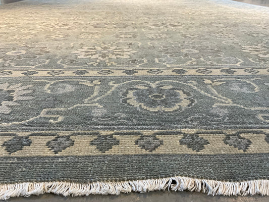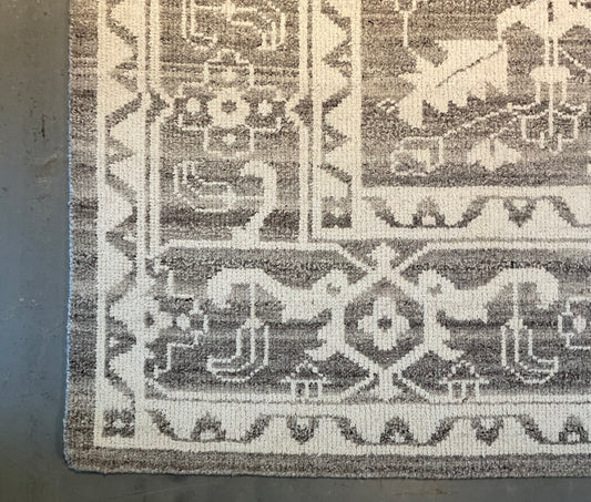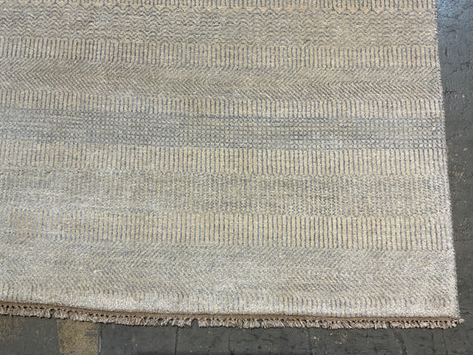 A modern wool and silk rug brings together soft tones of blue, grey | NU-4617