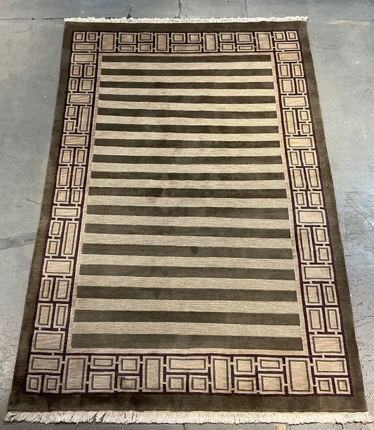 Smaller Stripe Pattern Modern Rug in Sage, Purple & Ivory | 1713