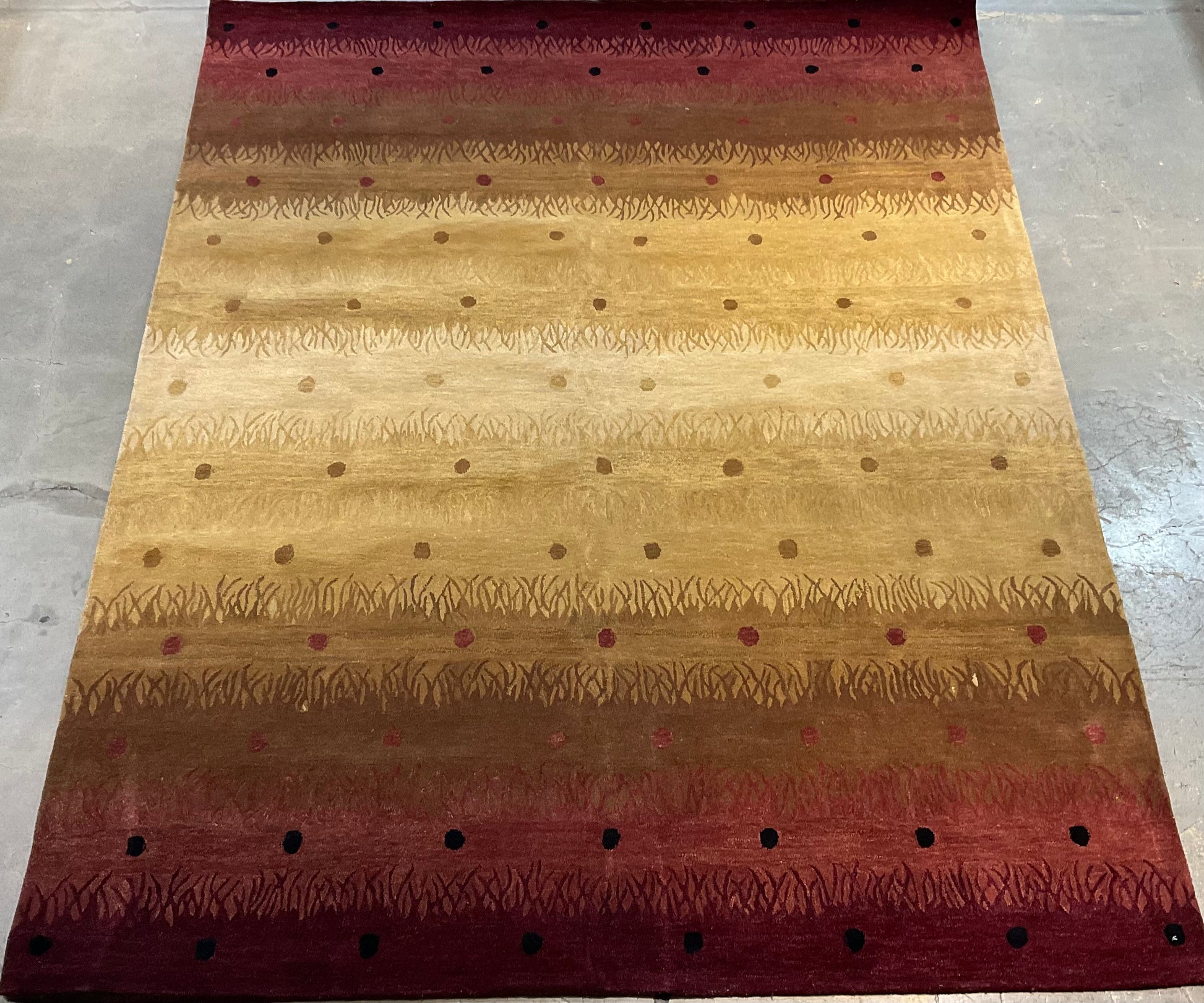 This 8x10 modern tufted rug combines warm tones of brown, yellow, and burgundy in a striking, contemporary design. Handcrafted with precision, its bold colors and clean pattern make it a perfect statement rug for living rooms, dining areas, or offices. A stylish choice for anyone seeking a designer rug with warmth and character.