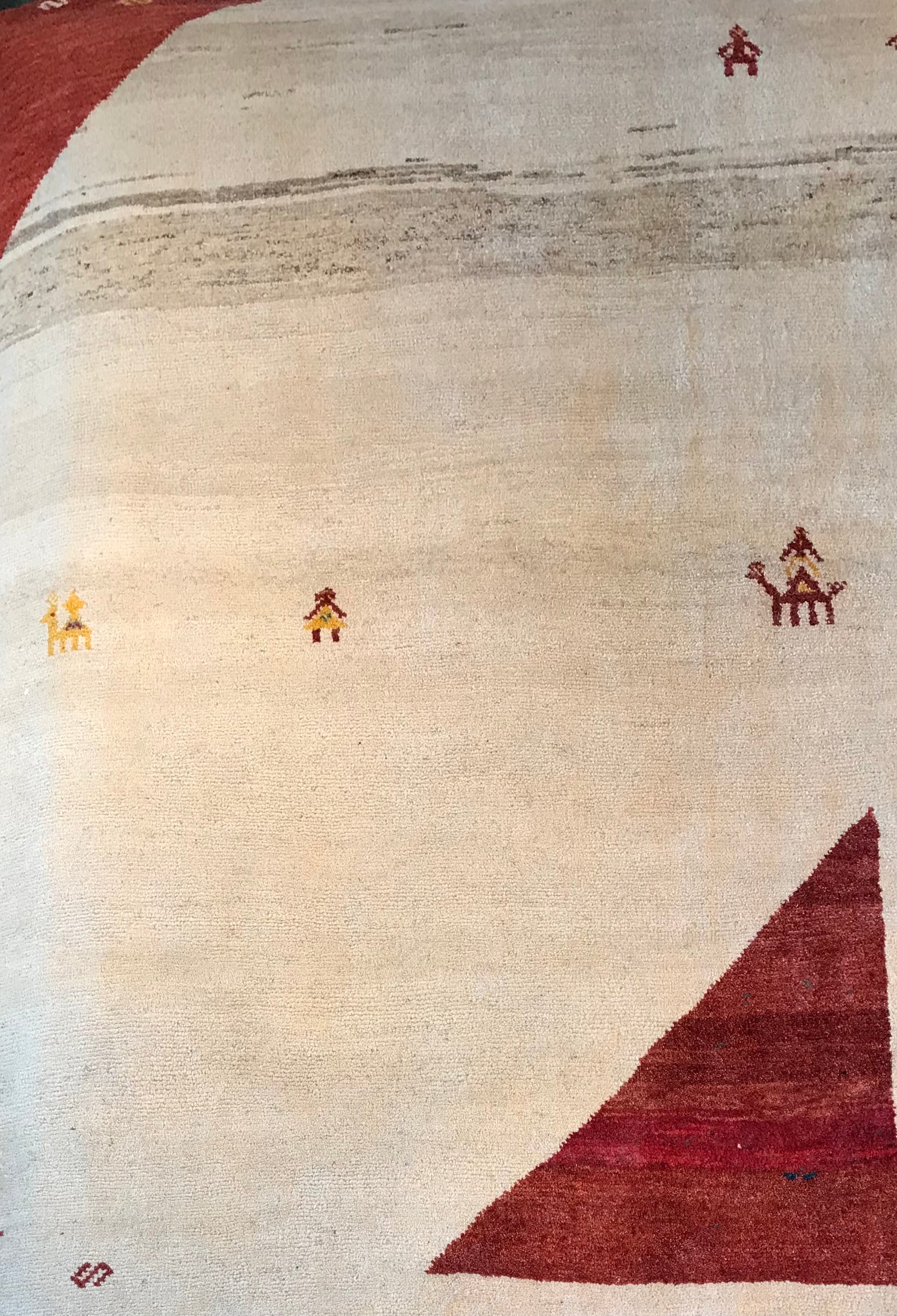 A Gabbeh wool rug is a handwoven Persian rug known for its thick pile, soft texture, and simple, bold designs. Made from high-quality wool and natural dyes, it features geometric patterns or abstract motifs, offering a rustic charm and artistic touch to any space.